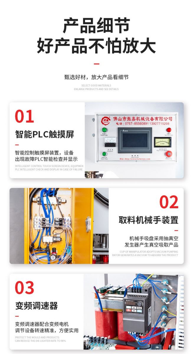 ◆轉(zhuǎn)盤式結(jié)構(gòu),三工位裝模,有效提高生產(chǎn)效率;